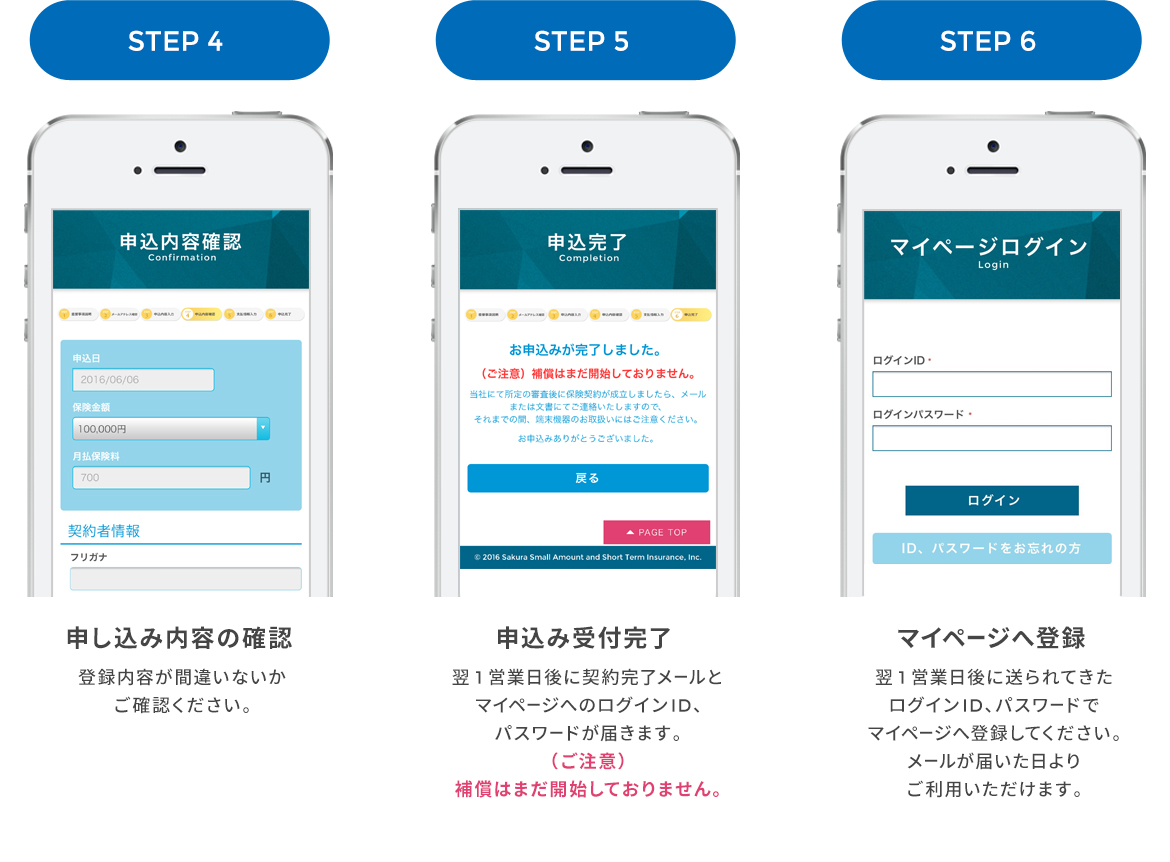 当ページからのお申込みの場合、翌日より補償が開始されます。(※土日祝を挟む場合、翌営業日となります)